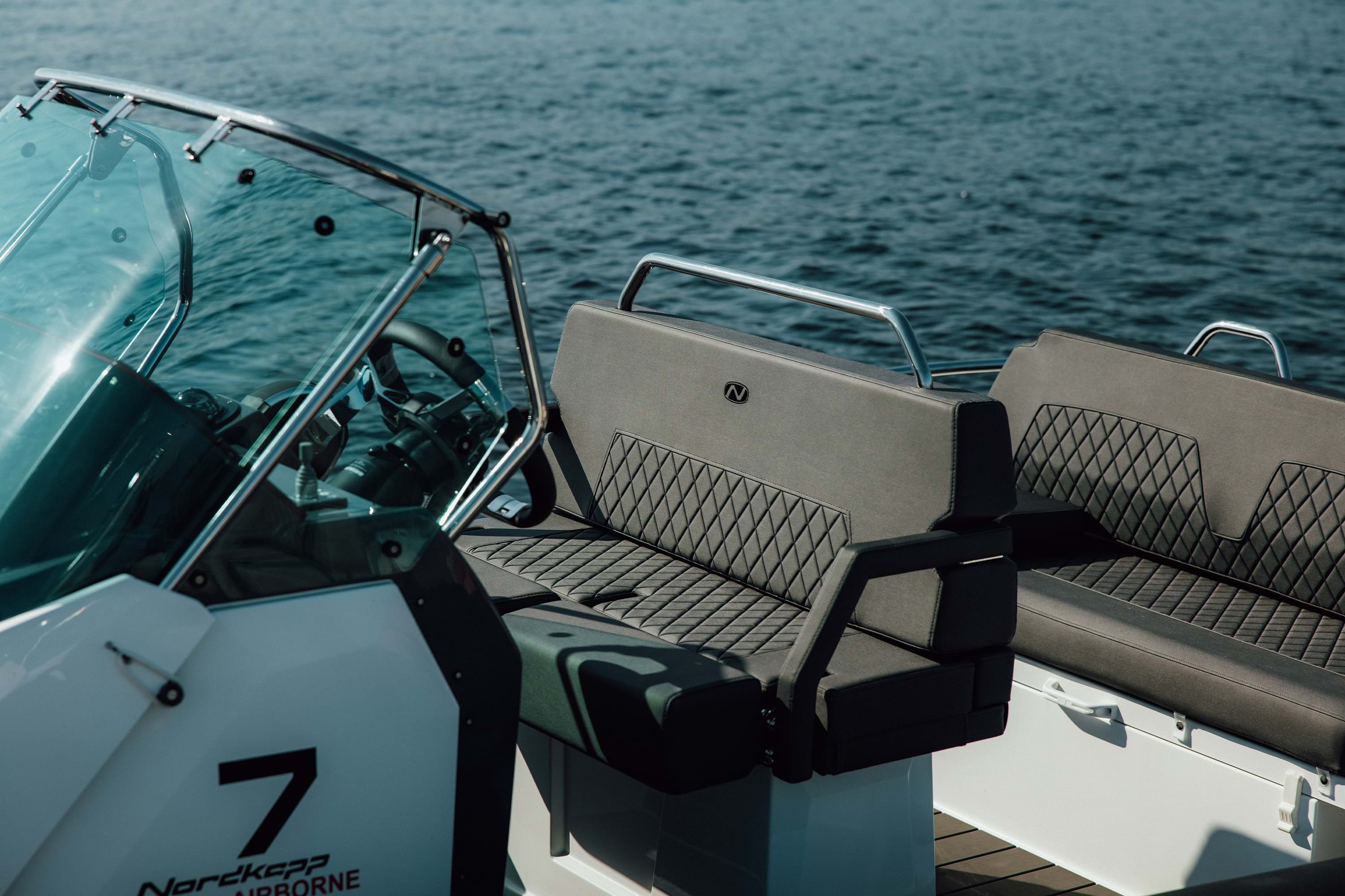 Nordkapp Airborne 7 handler først og fremst om gode kjøreegenskaper og sjødyktighet. Du vil kjenne igjen kjøreegenskapene fra våre glassfiberbåter og får i tillegg stabiliteten til en RIB. Utover kjøreegenskaper vil du også kjenne igjen de elegante løsningene fra andre Nordkapp båter - med blant annet baugpropell, ankervinsj, kjøleskuff og Fusion stereo er du rustet for bekymringsfrie dager på sjøen.
