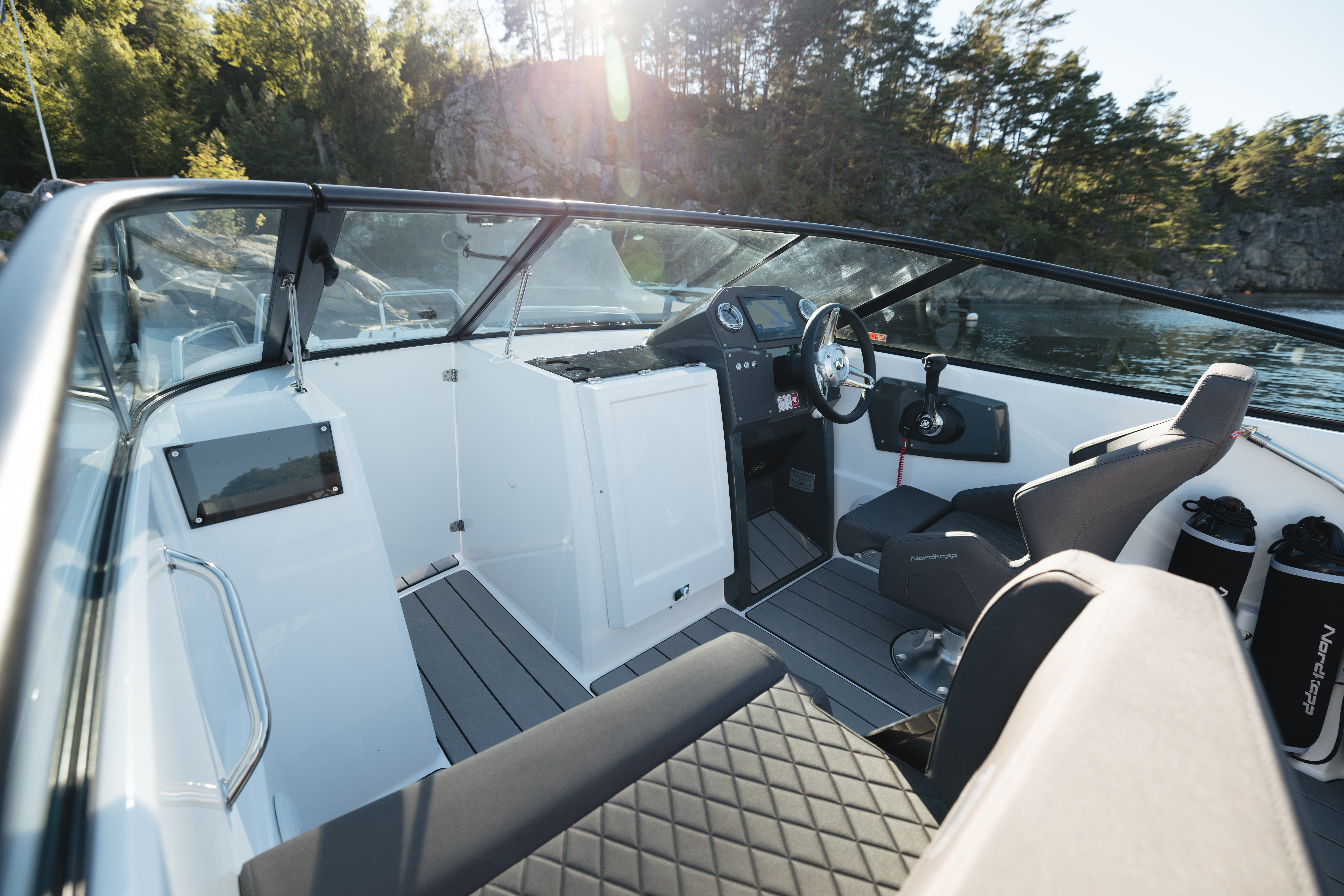 Nordkapps kjente designspråk kommer godt frem i båtens linjer og den deler flere løsninger med storebror Avant 705.