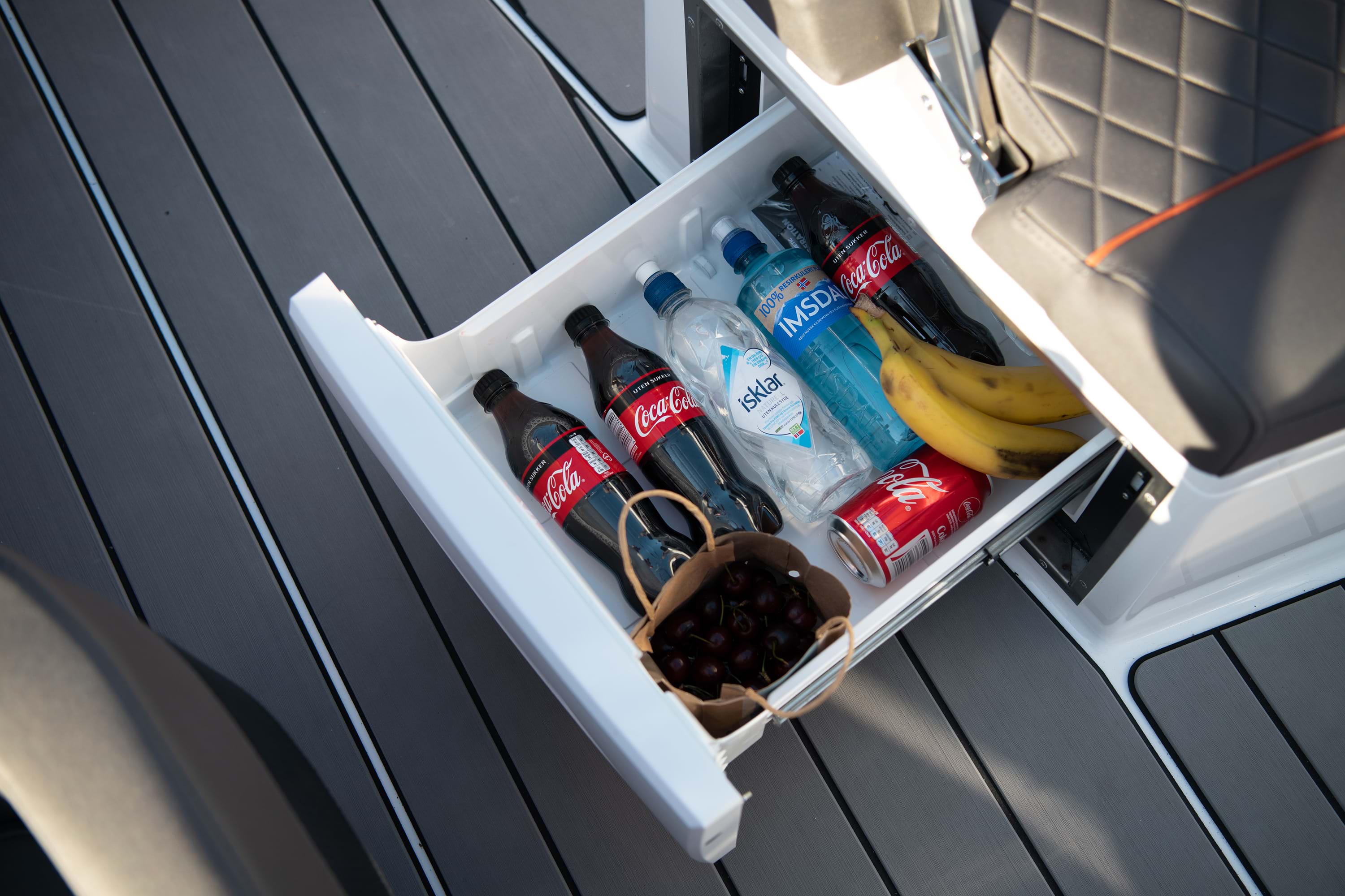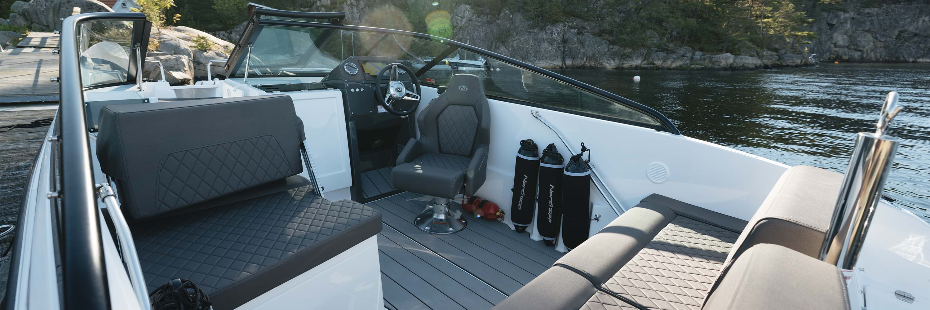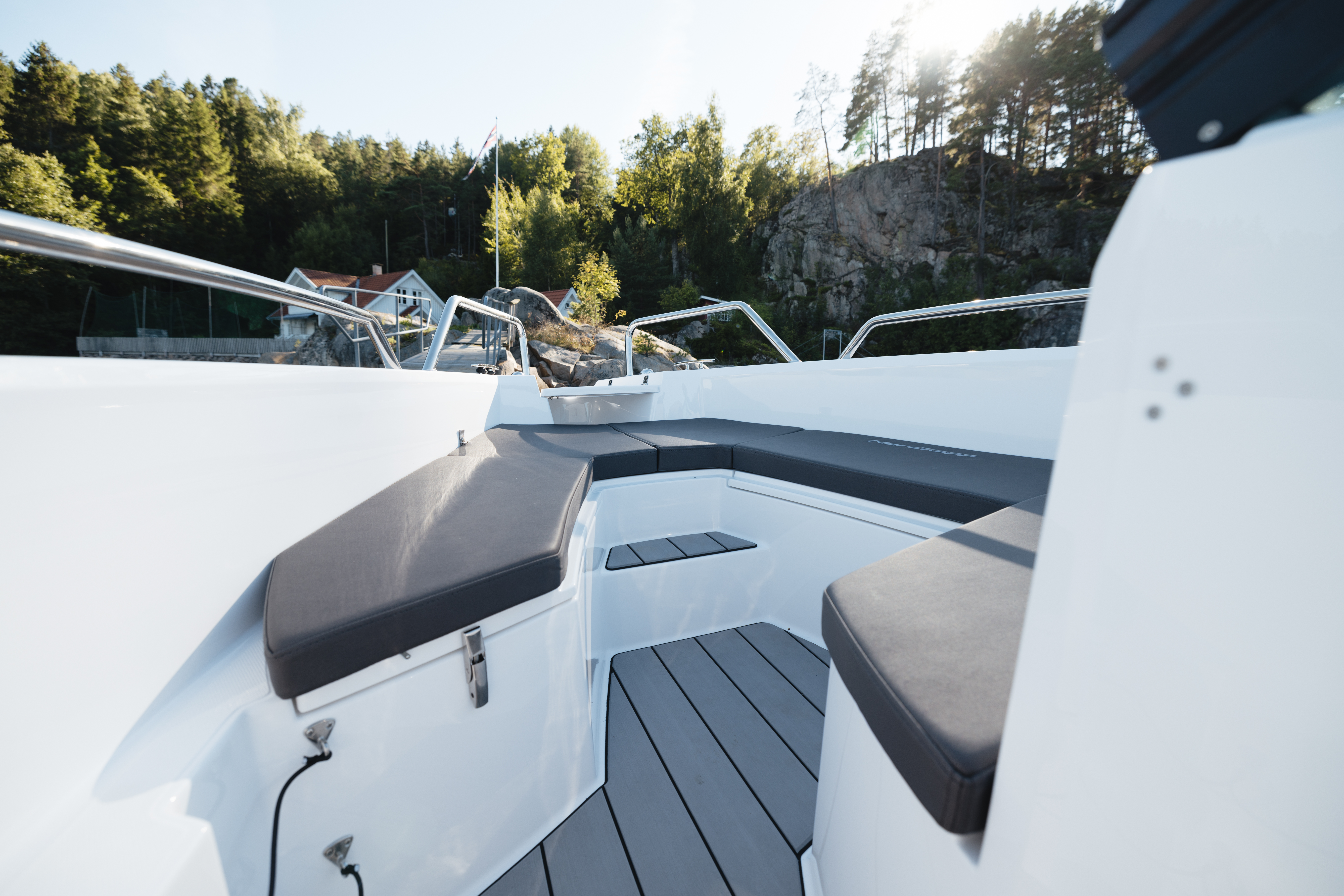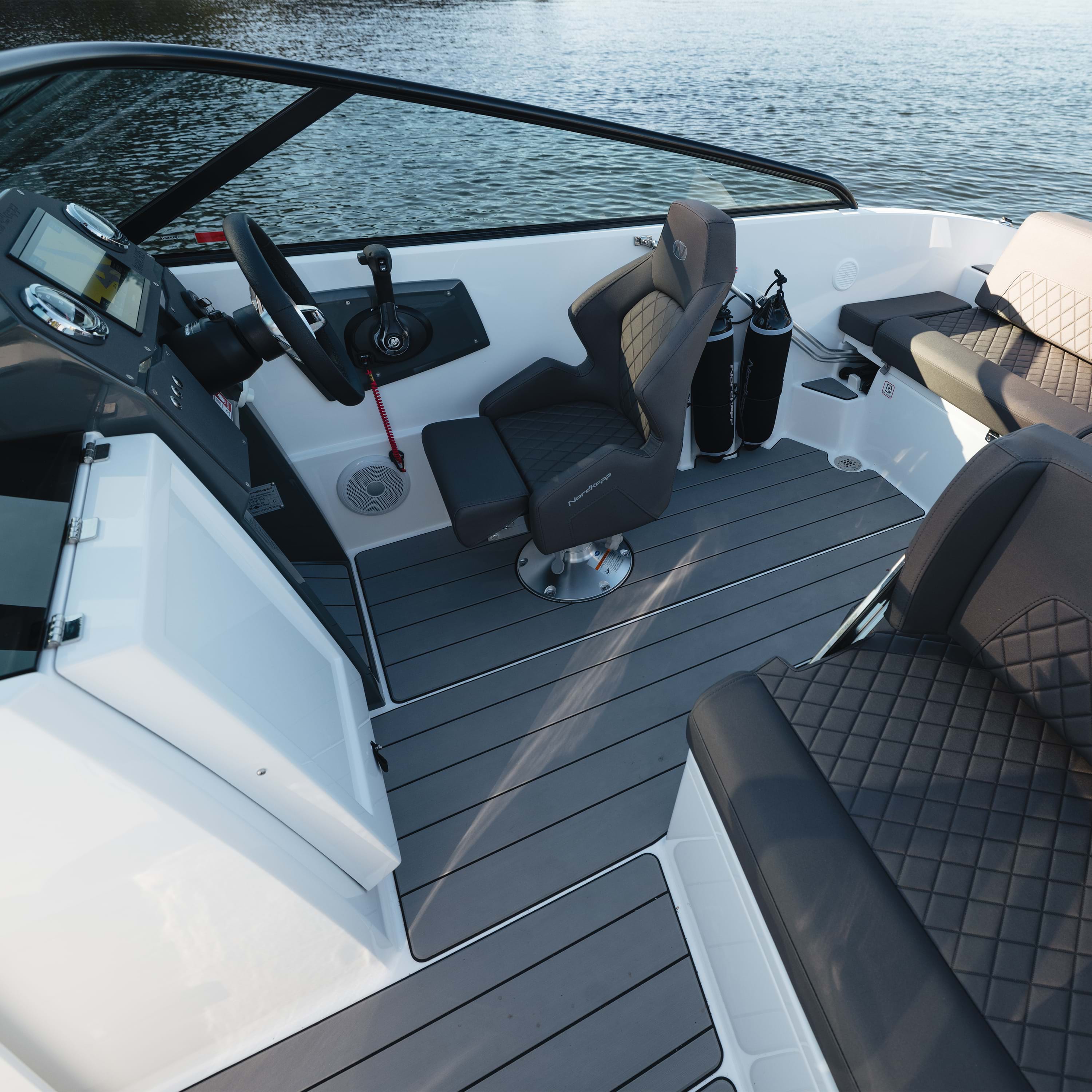 Den skarpe V-bunnen på Avant 605 gir sportslige kjøreegenskaper og komfortabel gange når du kjører rolig eller i sakte fart. Høyt fribord og det bredere baugdesignet gir enkel adgang om bord samtidig som alle sitter trygt og godt i båten. Kombinasjonen med Mercurys stillegående motorer gjør alle deler av kjøringen med Avant 605 til en sann glede.