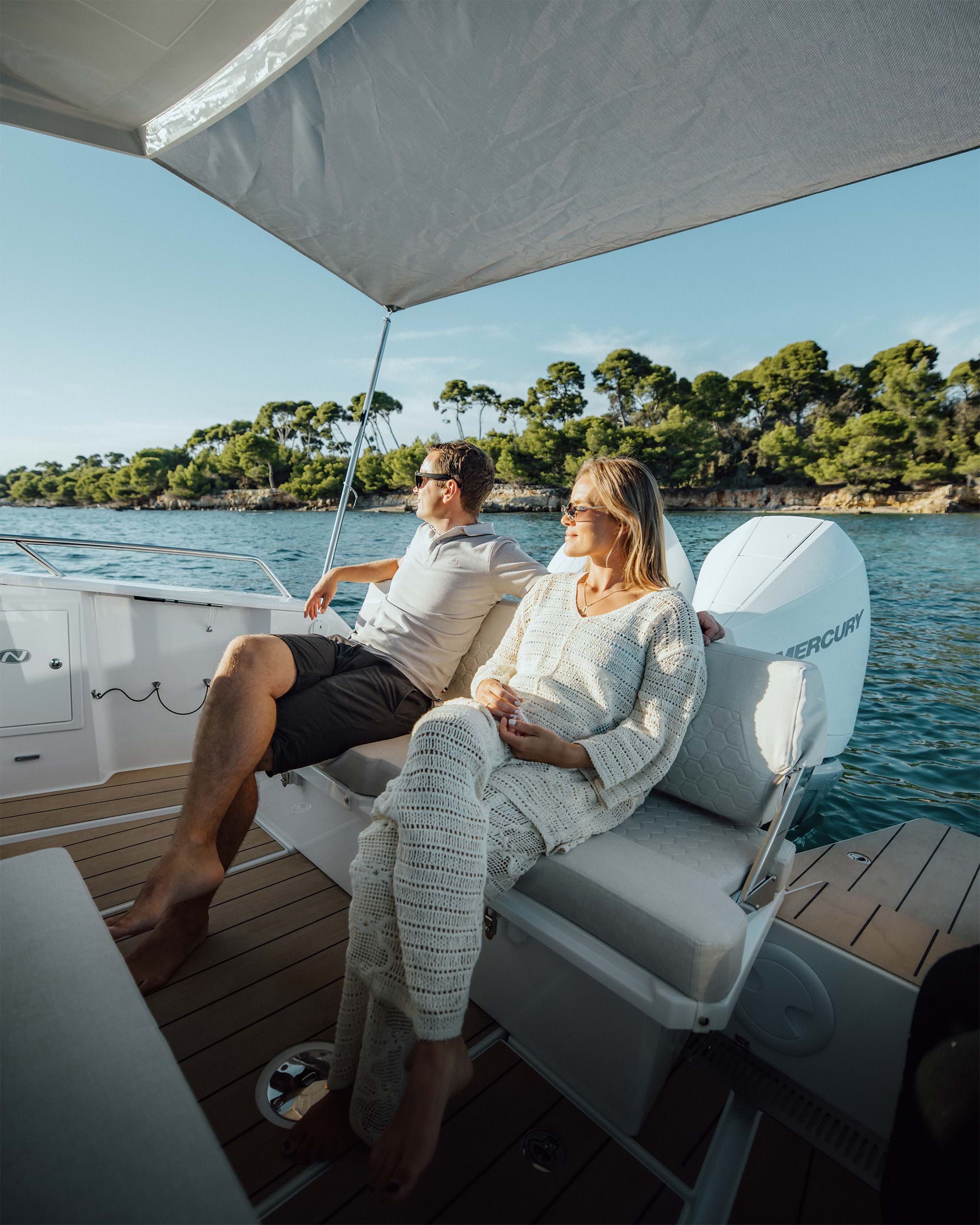 With its sleek lines and spacious cabin, this boat is designed to offer extraordinary comfort and style, making it the perfect vessel for a day out on the water.