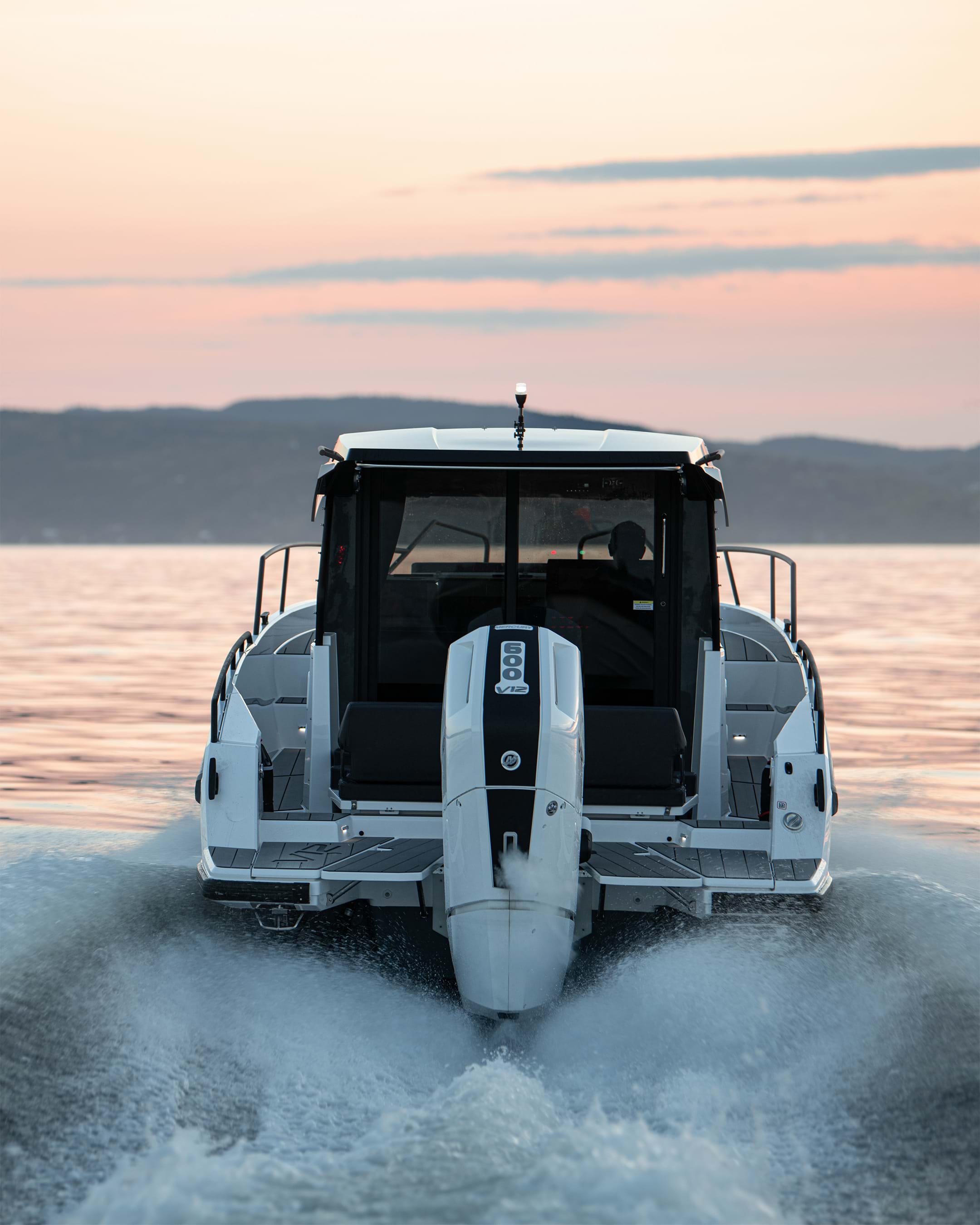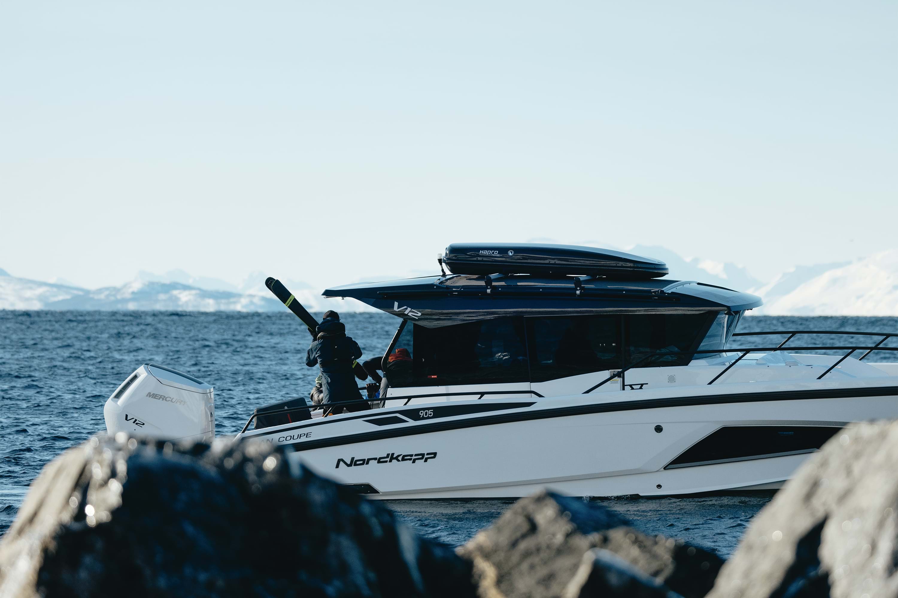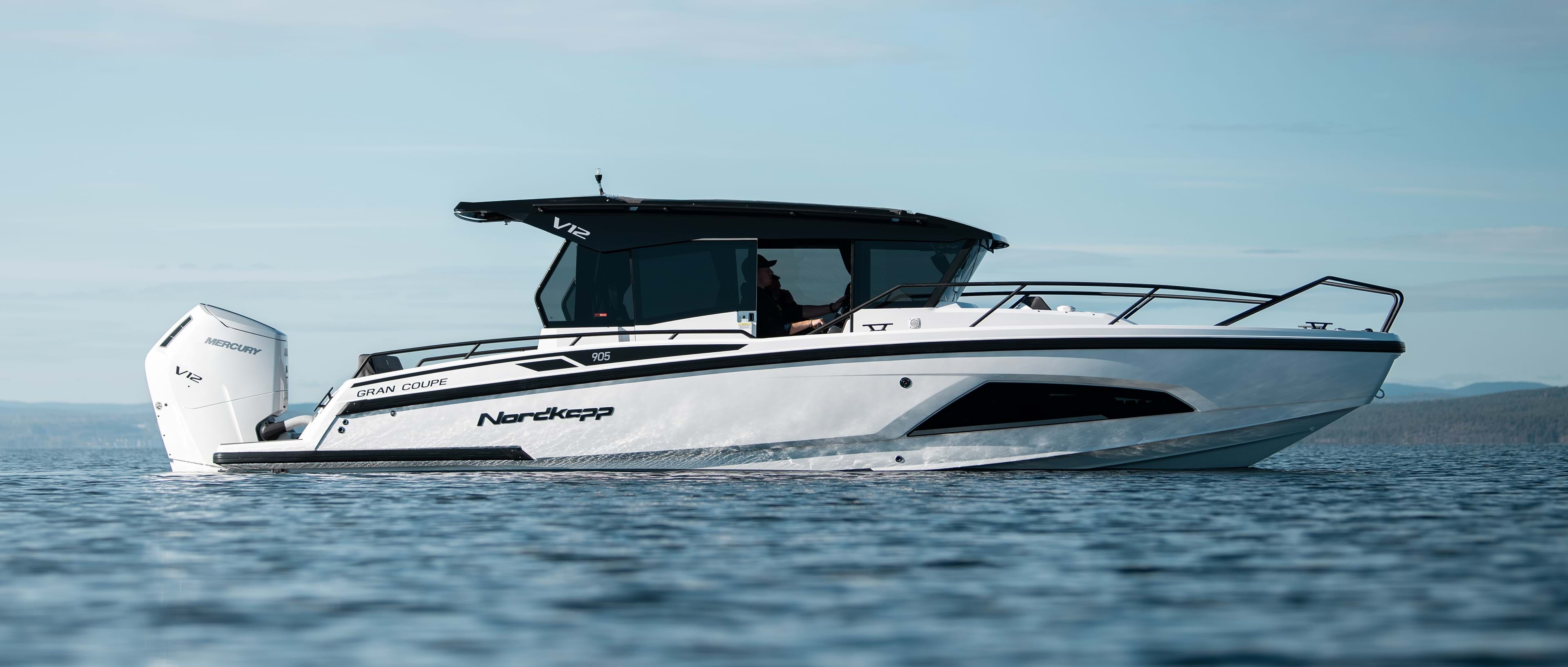 With the revolutionary 7.6 liter Mercury V12 Verado 600hp, progressive lines and refined luxury - the Nordkapp Coupe 905 V12 delivers unrivaled power.