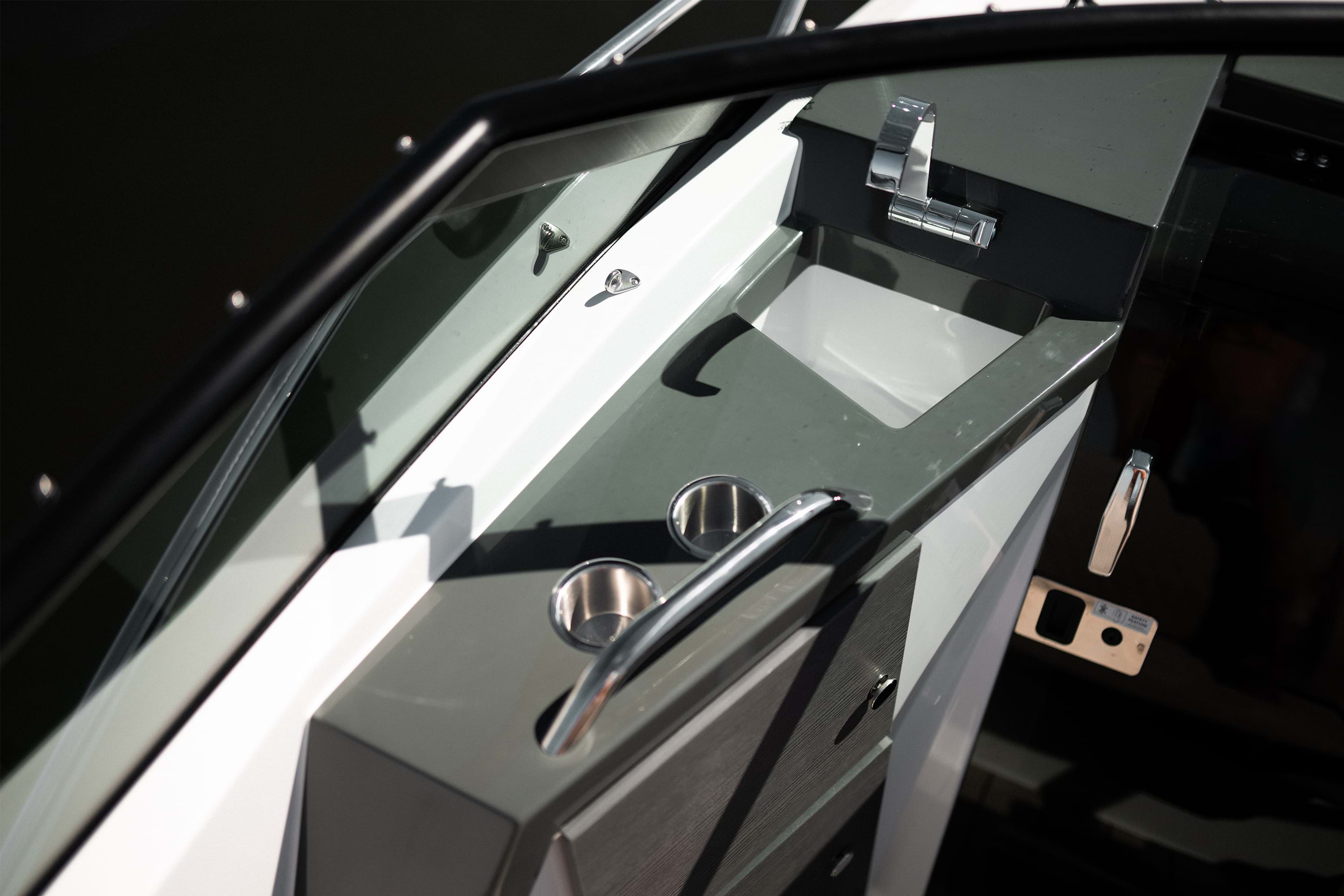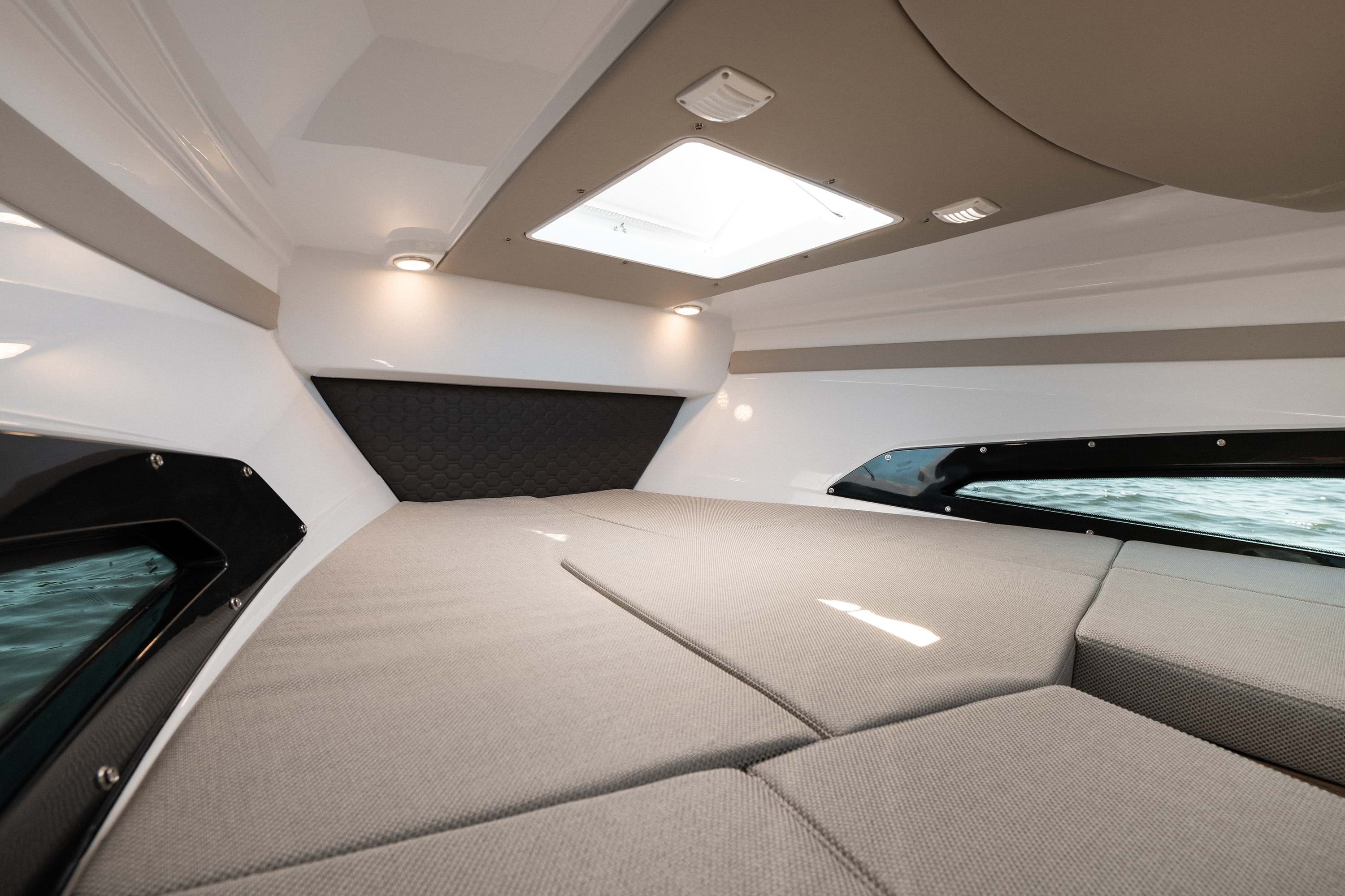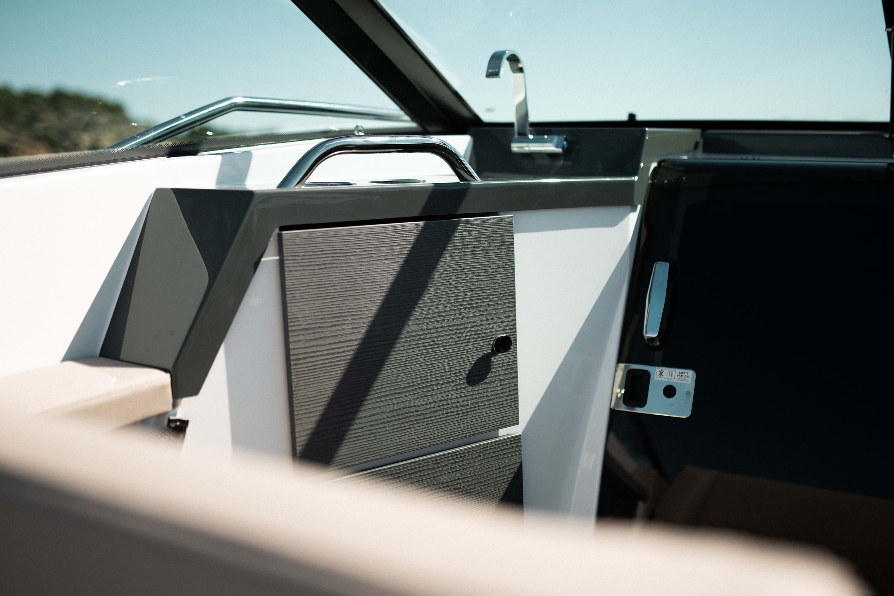 The Noblesse 720 perfectly embodies the essence of a day cruiser. Relax on the bow sunbed and enjoy your favorite tunes, or move to the aft sunbed or swimming platform sunbeds for a change of scenery. The social layout is ideal for entertaining family and friends, and the Webasto heater ensures cozy summer evenings spent in the plush cabin. With its nimble handling and thrusters, the Noblesse 720 offers an exhilarating driving experience and makes docking a breeze.