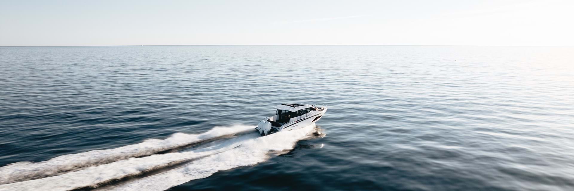 The wheelhouse of the Coupe 905 is a game-changer for me. It provides a sheltered space where you can relax and navigate the waters comfortably. Imagine cruising on a crisp autumn morning. After pouring a freshly brewed cup of coffee, you head out on deck. The steam from the cup is enhanced by the cold, feeling the cool breeze on your skin while enjoying the warmth of the coffee, savouring the moment, knowing you can head back into the pleasant wheelhouse anytime. Or picture yourself exploring serene winter landscapes in open waters, with the snow-covered surroundings enhanced by the panoramic windows, creating a magical atmosphere outside the warm and inviting wheelhouse, shielding you from the elements.