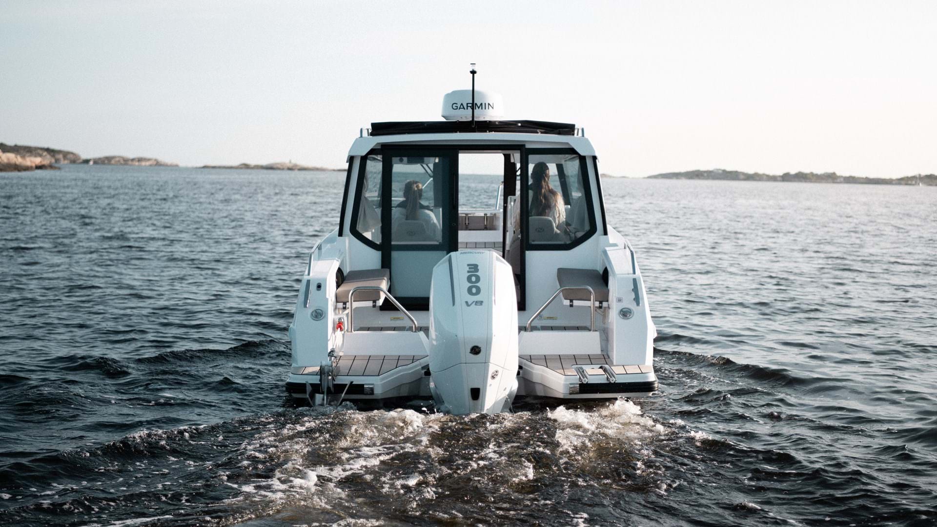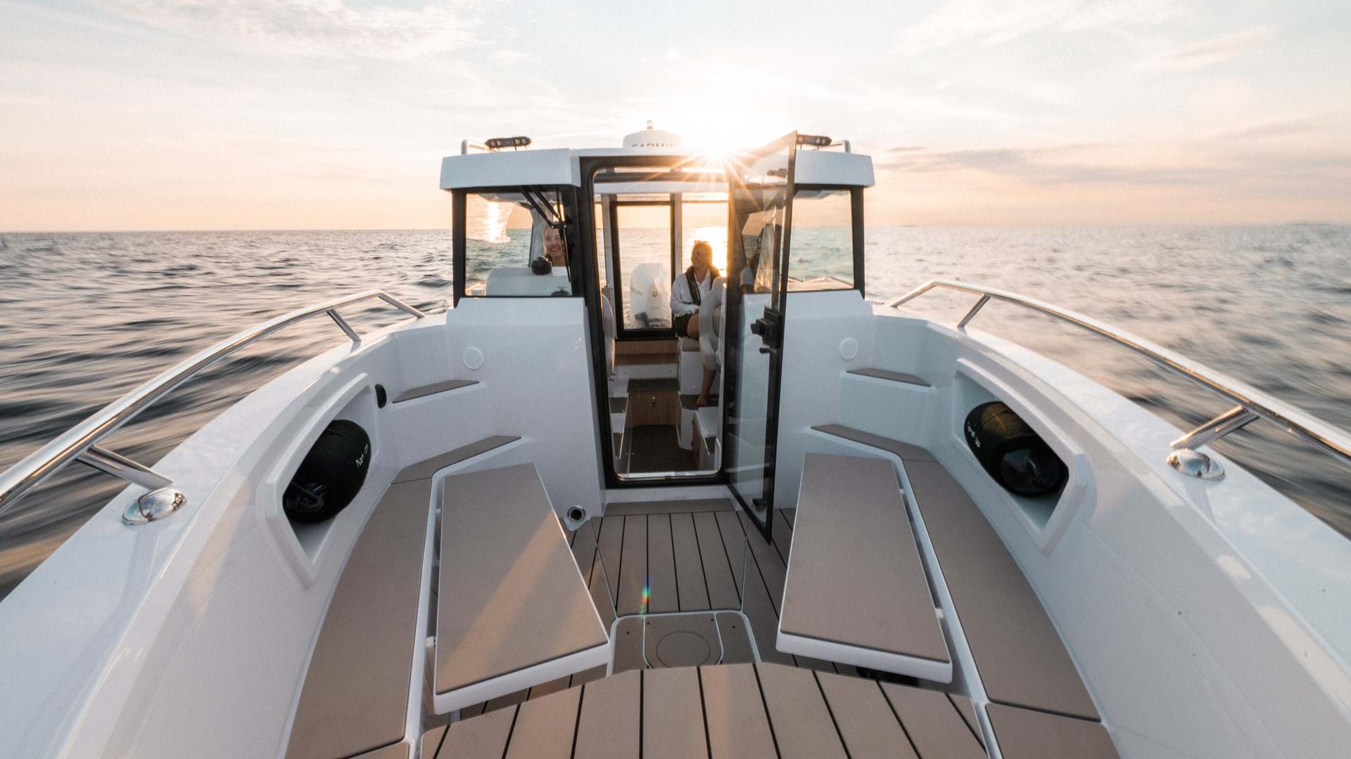 Picture a crisp autumn morning as you set out toward your destination. The sun rises from the sea, the wheelhouse is warm and inviting, and your favourite music plays softly in the background, setting the mood for a perfect day. As you push the throttle, a surge of energy pulls you into the backrest of the driver's seat.