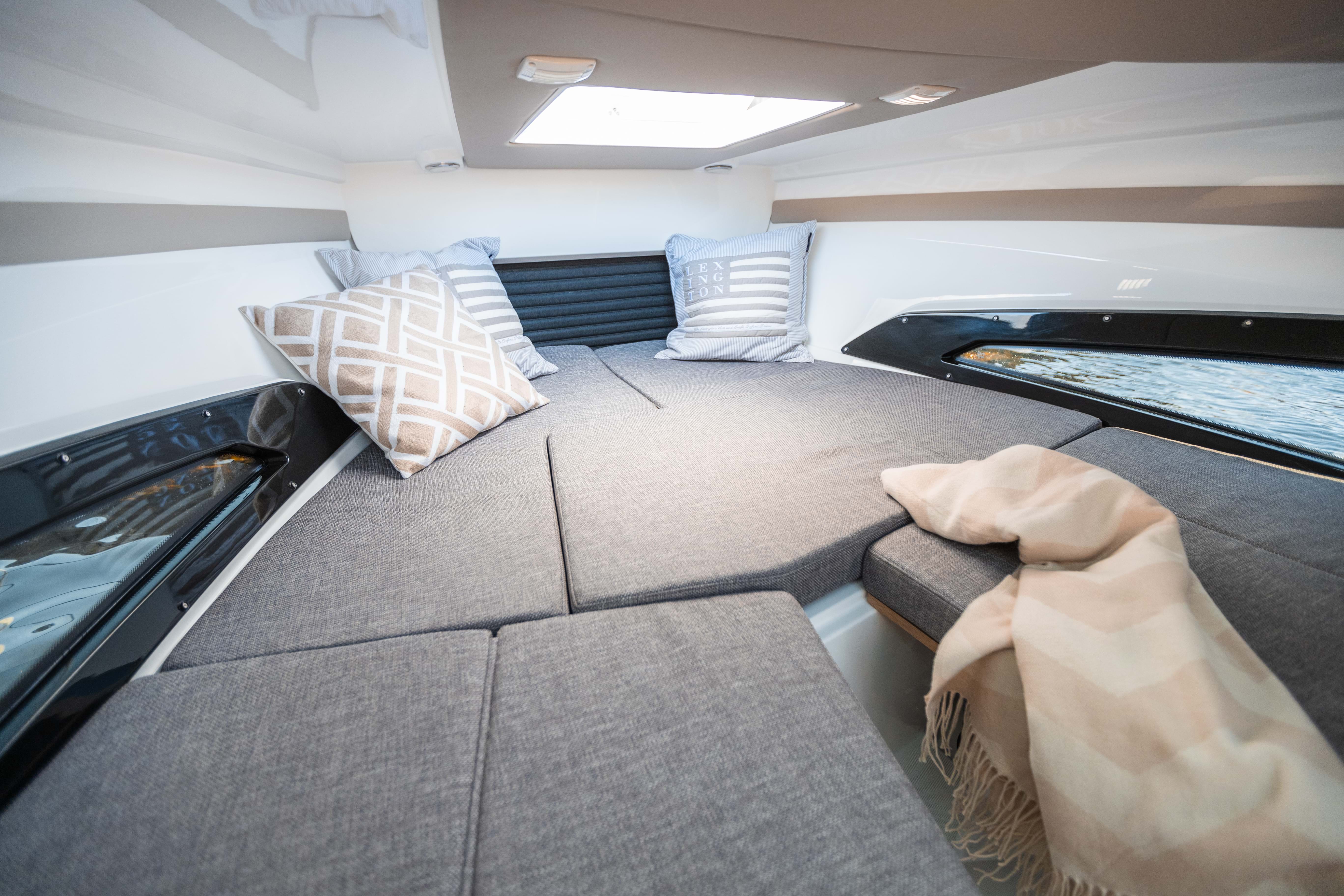 In the definitive daycruiser, your days become moments of luxury. Every touch has a premium feel, and the boat's comfort ensures you always find a good excuse to extend your time at sea. You'll often find yourself unwilling to head back to shore after a long day, tempted by the inviting sleeping cabin below deck.