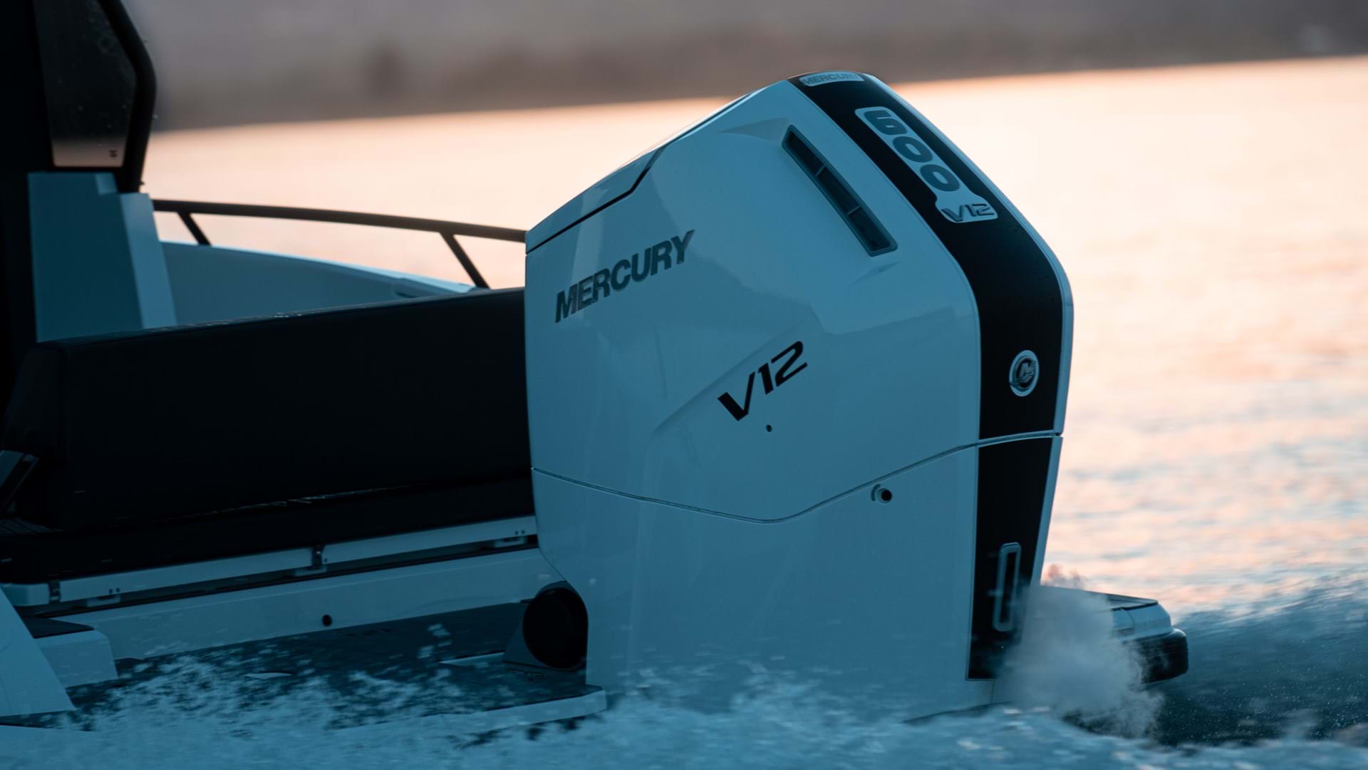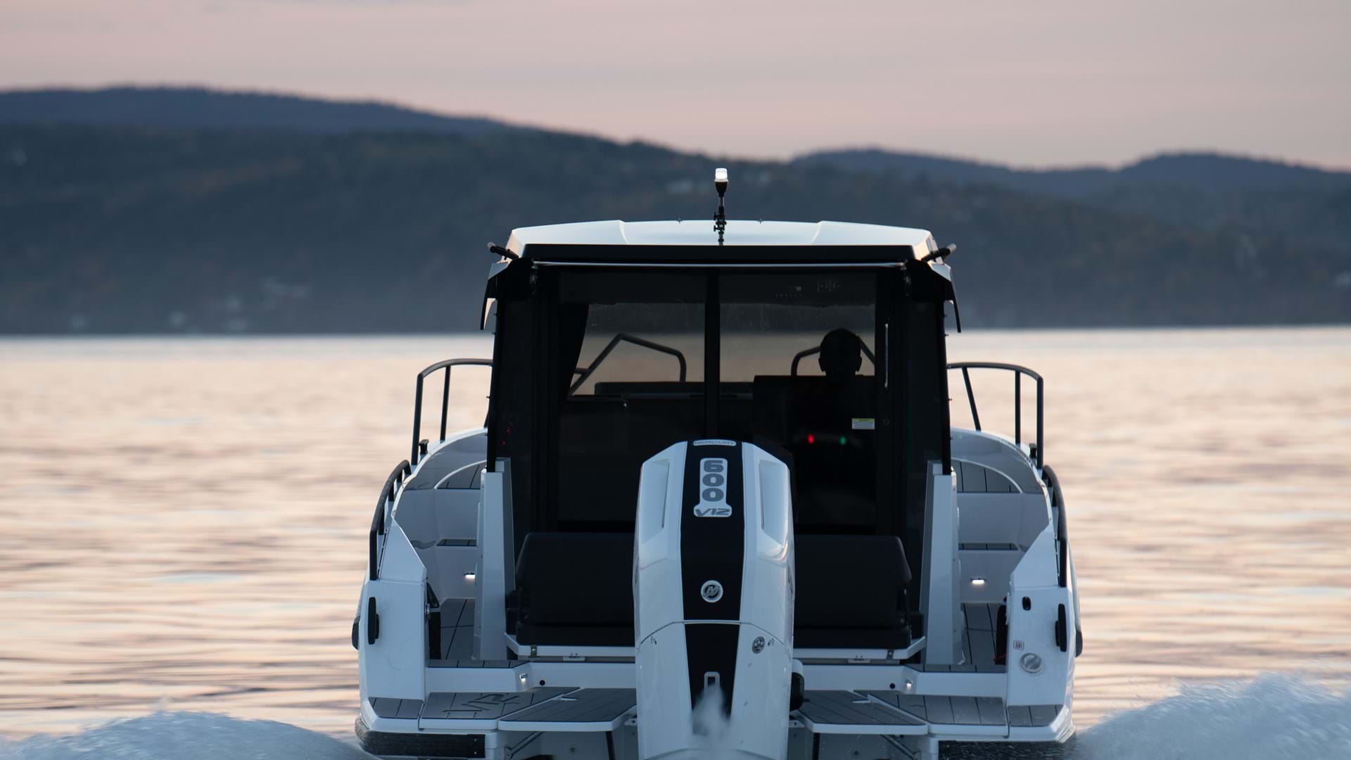 I løpet av 2020 lanserte vi flaggskipmodellen vår, Coupe 905. Dette er en 9 meter lang båt som ville flytte grensene for hva en styrhusbåt kan være. Alt ved Coupe innbyr til eventyr; det er en sporty, førervennlig båt med et bratt V-formet skrog. Dette er en type båt som hvisker deg i øret at du skal ut og oppdage det som ligger bak horisonten så snart du setter deg ved roret. Og med sine to 250 hk-motorer hadde den allerede mye kraft. Så da Mercury presenterte sin nye Verado 600-motor, verdens første V12 utenbordsmotor med et slagvolum på 7,6 liter og 600 hestekrefter, visste vi at vi hadde det perfekte utgangspunktet for å skape den neste utviklingen av styrhusbåter.