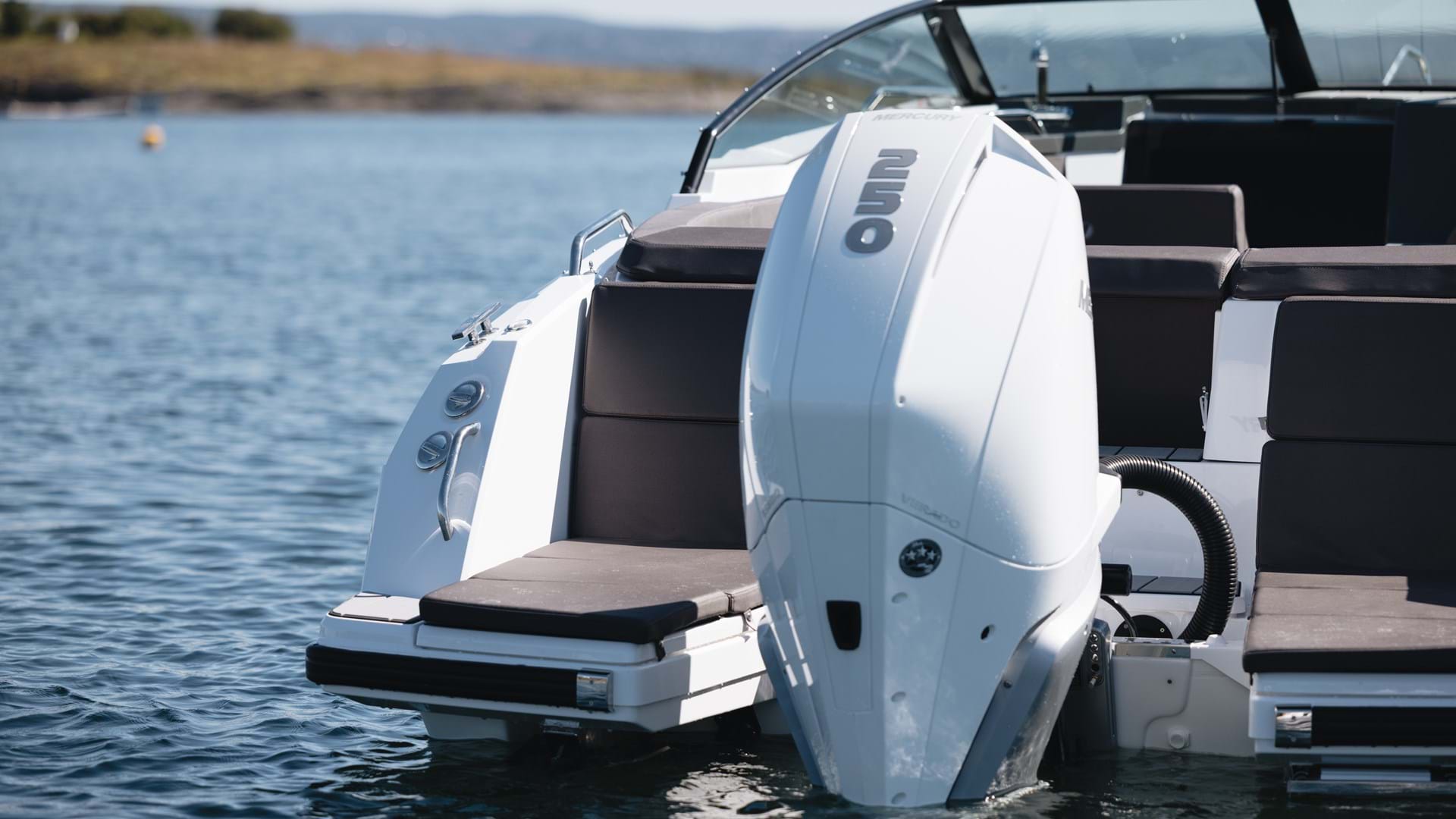 Riktige fasiliteter kan utgjøre en forskjell når du overnatter om bord. På Noblesse 720 kan du holde enhetene dine ladet via USB-porter. Maten din holder seg fersk i kjøleskuffen, og en ferskvannstank med vask gjør det enkelt å holde tallerkener og redskaper rene. Du har også muligheten til å utstyre båten med et elektrisk toalett, en dusj for badeplattformene og en Fusion stereo for å nyte tiden på sjøen med musikk.