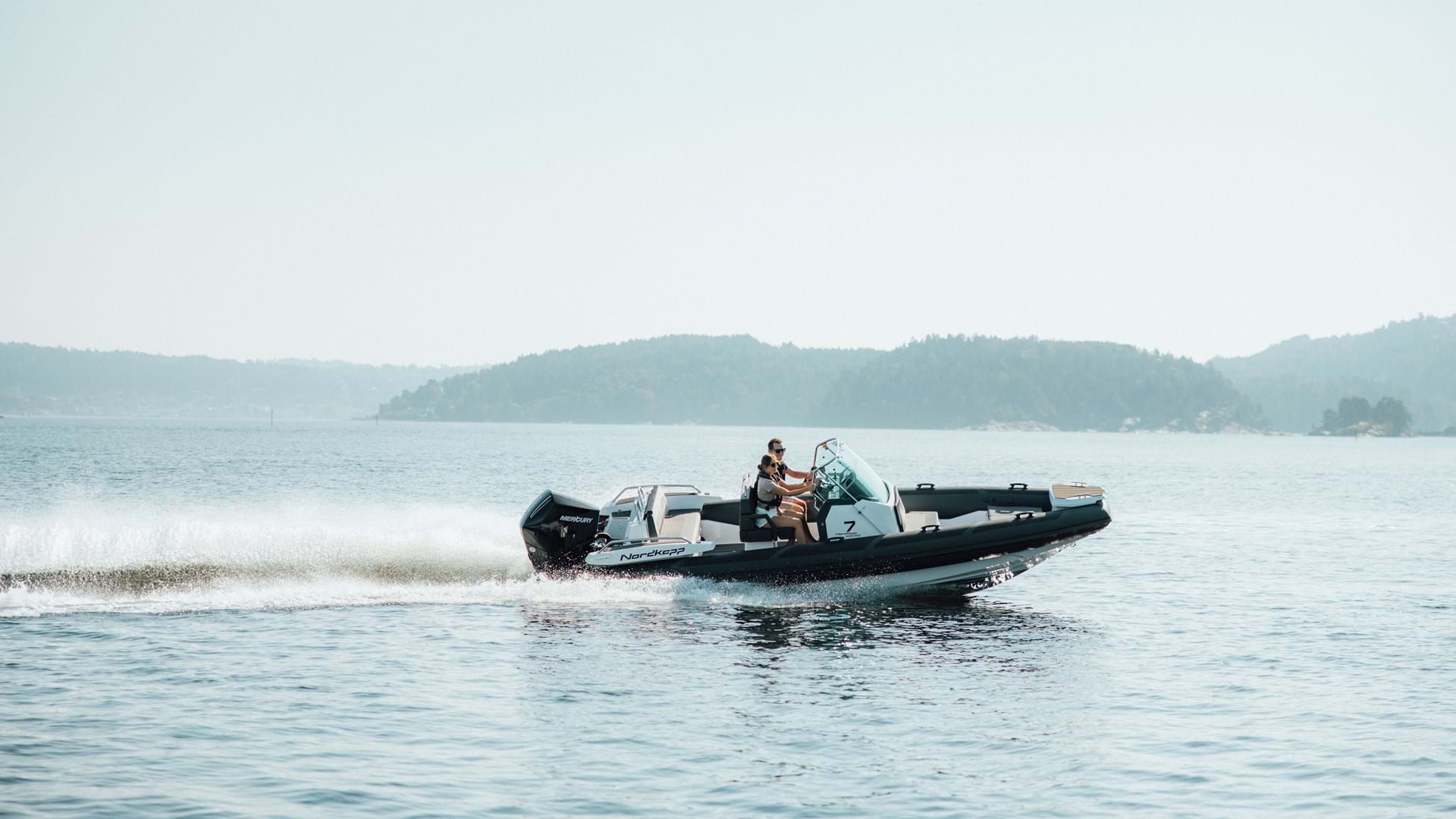 Nordkapp Airborne 7 er en 6,80 meter lang RIB utviklet med føreren i sentrum. Den har plass til opptil 10 personer, et lett skrog, asymmetriske tuber og motoralternativer opptil 250 hk. Det gir deg presis kontroll – kombinert med den diskrete komforten Nordkapp er kjent for.