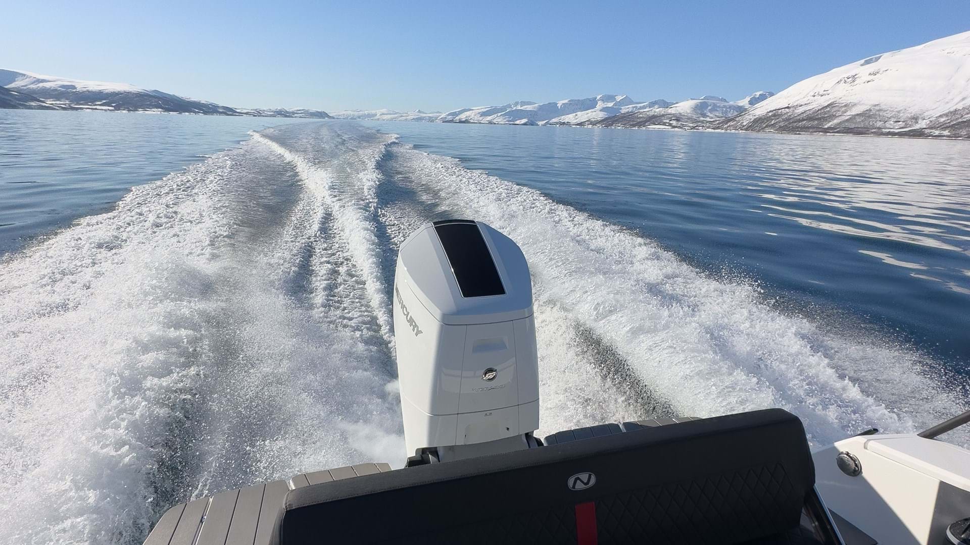 Coupe 905 V12 ble også satt på en uventet prøve. På den siste opptaksdagen dukket det opp en massiv snøstorm i horisonten, på vei fra nordøst. Vi hadde ikke mye tid på å planlegge. Det var ikke aktuelt å forlate båten, så jeg bestemte meg for å sette kursen alene mot Tromsø, i et kappløp mot den truende stormen. Etter hvert som jeg navigerte båten, ble bølgene stadig mer formidable, og de nådde høyder på over to meter, selv inne i fjordene. Under hele seilasen følte jeg likevel en urokkelig tillit til båtens evner. V12-motoren drev gjennom det bølgende havet, og skroget skar seg gjennom bølgene med presisjon. At vi nådde Tromsø rett før stormen, var ikke bare en lettelse, men også en bekreftelse på påliteligheten og ytelsen til Coupe 905 V12.