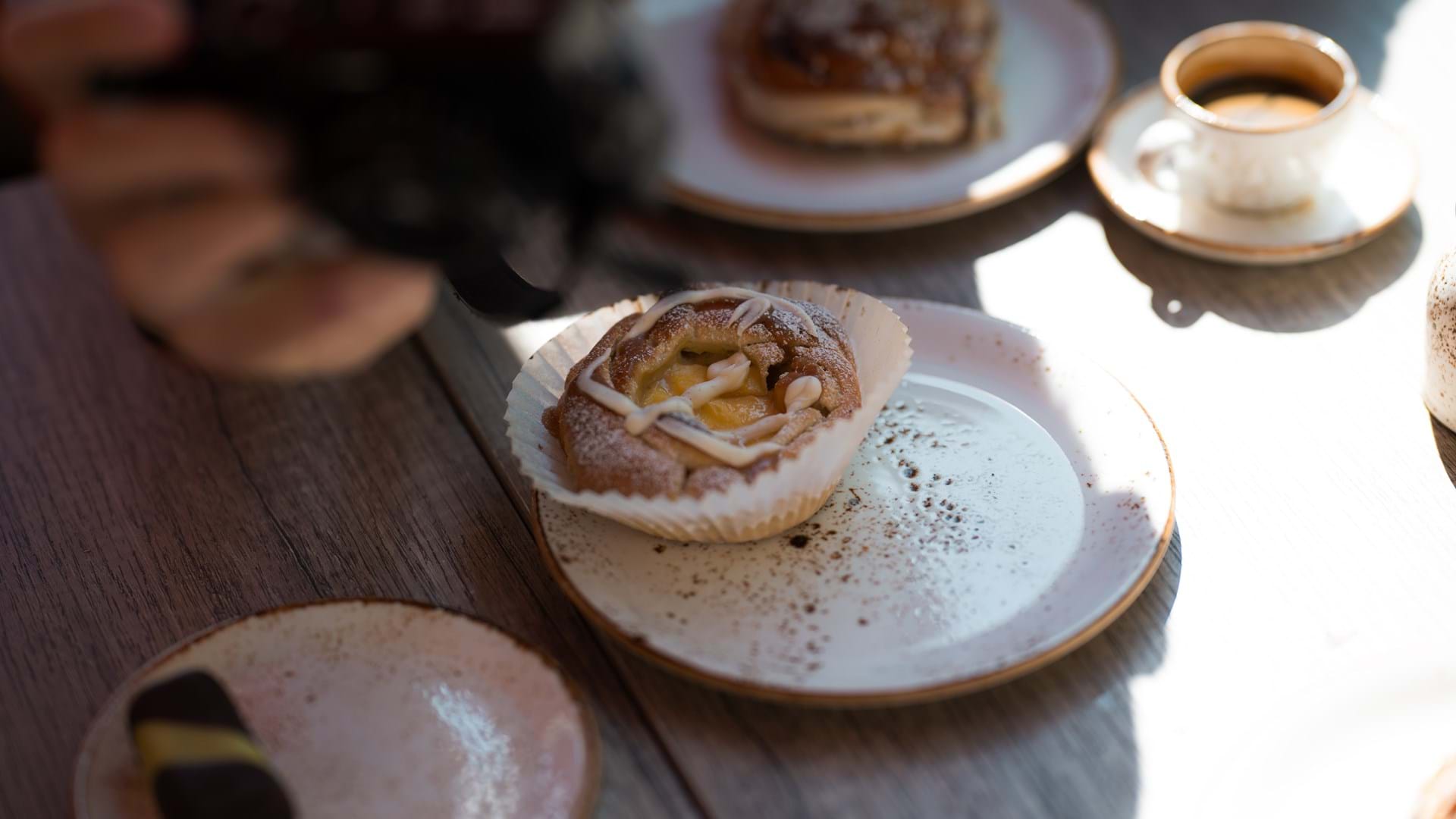 På Fredriks anbefaling bestilte vi kanelboller, wienerbrød og en punsjrull – også kjent som støvsugeren. Klassikere i enhver svensk kafé. Vi satte oss ned og lot praten flyte over kaffekoppen.