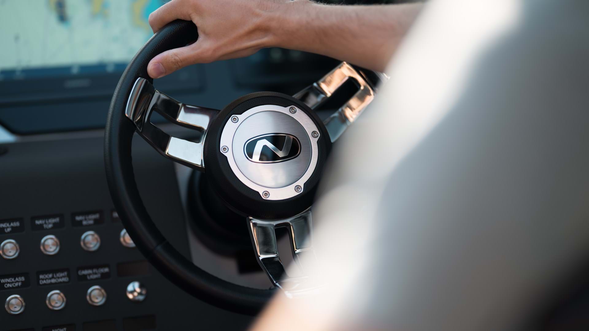 Båten lå stille i vannet, den lett gjenkjennbare lyden av bølgeskvulp som treffer skrogsiden, ga oss en god følelse. Den gode følelsen fikk vi også inne i styrhuset idet vi forlot brygga, og forventningene til det som skulle skje bygget seg opp. Det var meldt vindkast på 12m/s denne dagen, noe som ofte resulterer i røff sjø i dette området. Istedenfor å grue seg til bølger og sjøsprøyt, gleder man seg når man sitter ved roret på 905 V12, godt beskyttet av styrhuset.