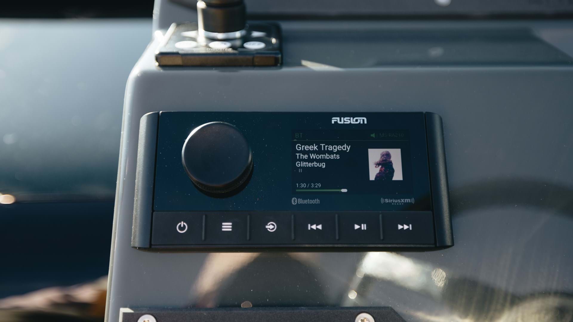 Forestill deg en kveld med venner om bord i båten mens solen går ned i horisonten, med latter og gode samtaler akkompagnert av favorittmusikken din. Takket være Fusion Stereo kan du skape disse perfekte øyeblikkene og skreddersy musikken etter stemningen på turen. Enten det dreier seg om en rolig solotur der de myke melodiene utfyller det fredelige vannet, eller en livlig familietur fylt av latter og favorittmusikk, sørger systemet for at båtopplevelsen blir helt unik.