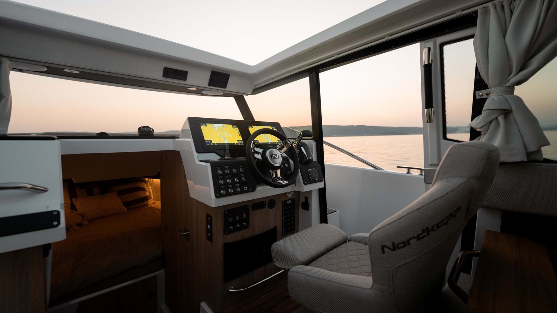 Coupe 830 er en lettkjørt styrhusbåt som balanserer funksjon og komfort. Den passer godt for deg som vil ha en gjennomført weekendbåt med overnatting – men som også setter pris på muligheten for båtkjøring gjennom hele året. Styrhuset gir sval skygge på varme sommerdager, og lun varme når kvelden faller på.