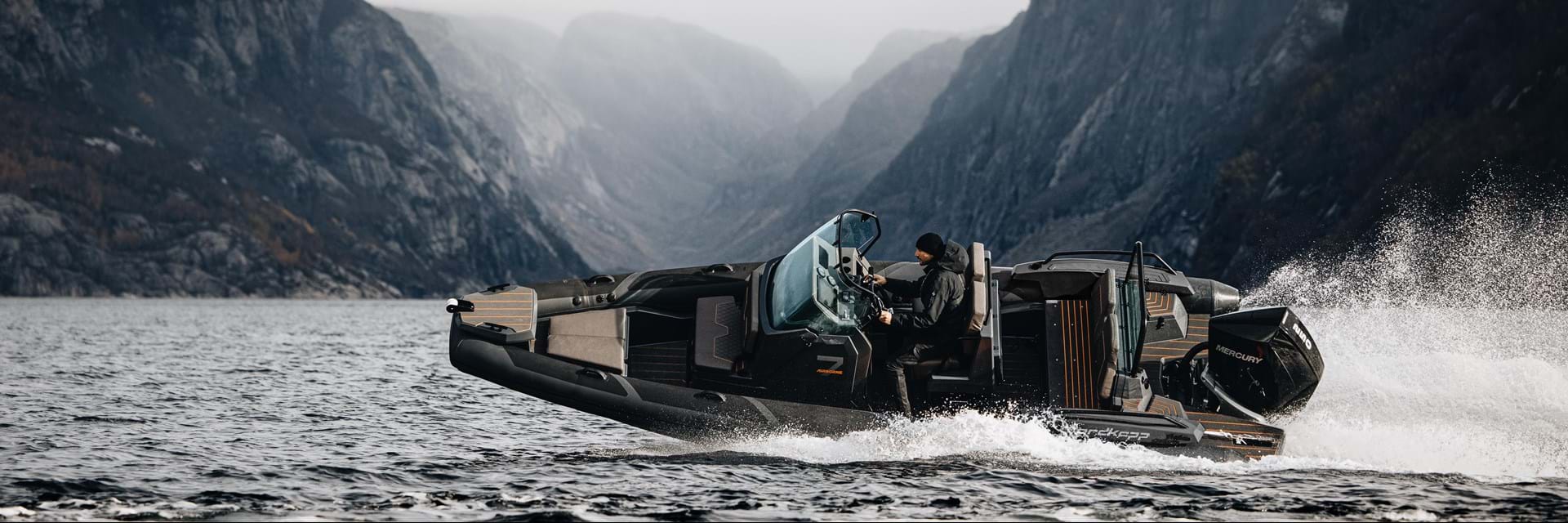 Da Airborne 7 ble lansert i 2021, ble verden introdusert for neste generasjon RIB-er. Båten er en hyllest til det en klassisk RIB bør være, med en ny manøvreringsfilosofi som plasserer denne båten i en klasse for seg selv. Med en kraftig Mercury Verado V8-motor i hekken starter nedtellingen til start så snart du setter foten på dekk. Airborne 7 vekker en eventyrlig kjøreglede, samtidig som den gir den følelsen av eleganse som forventes av en Nordkapp-båt. Den er vill og stilig, som en jaguar ikledd smoking, som håndterer knivskarpe manøvrer med letthet, men som venter på å slippes løs på din kommando.